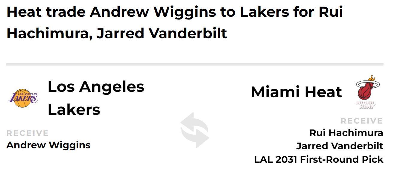热火队则在交易中换回了湖人队价值不菲的31年首轮签,外加八村与范德比尔特两名锋线即战力,双方可谓是各取所需。